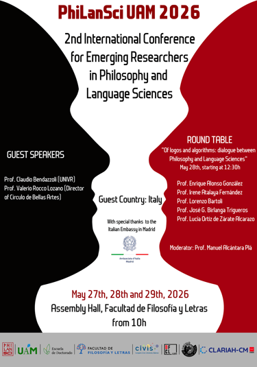 Posters should be sent to: Faculty of Philosophy and Letters, C/ Francisco Tomás y Valiente, 1. Autonomous University of Madrid. Ciudad Universitaria de Cantoblanco, 28049 Madrid (unless at least 10 poster submissions are received by April 30th, that category will be eliminated).